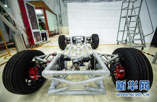 贵州翰凯斯智能技术有限公司生产的无人驾驶汽车底盘。新华社记者 陶亮 摄